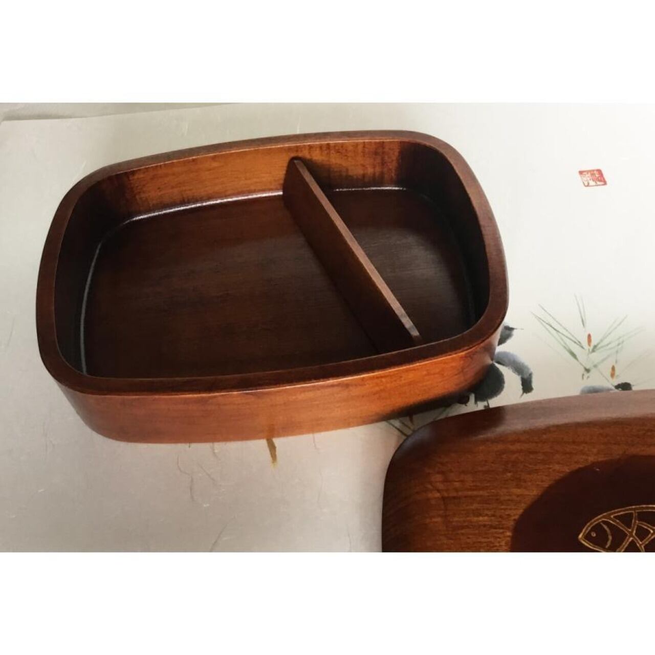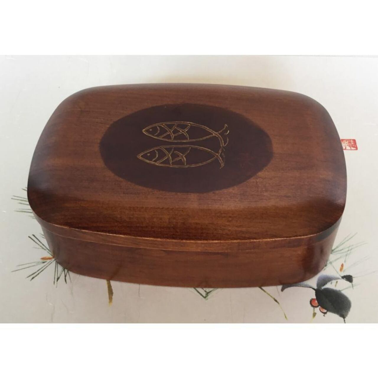 弁当箱 木製 本漆塗 魚文 スリ漆 一段小判弁当 6寸 18cm 国産 香川漆器 漆器
