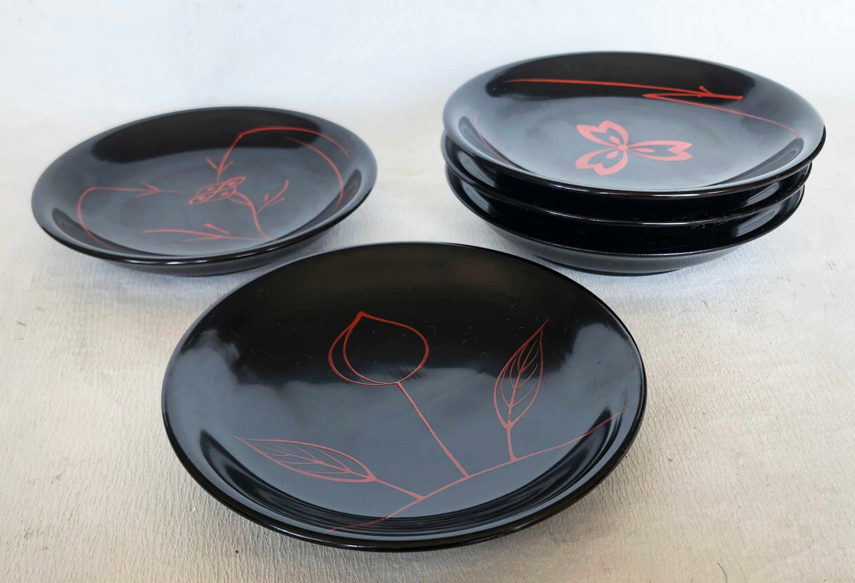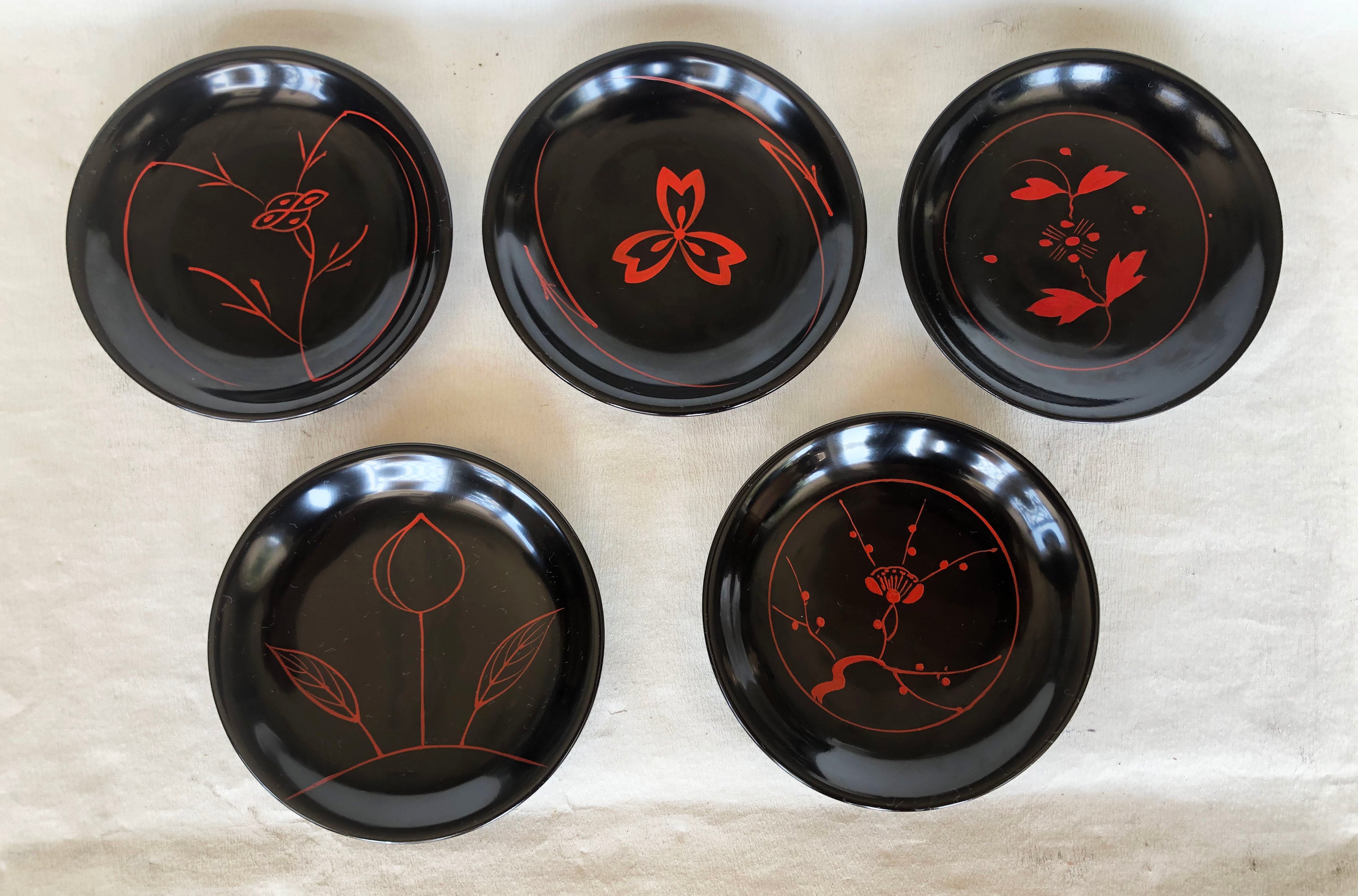 銘々皿 漆塗 民芸絵変わり鈴木繁男デザイン 5枚 取皿 5寸 14.5cm 木製