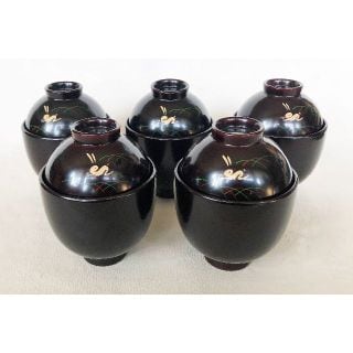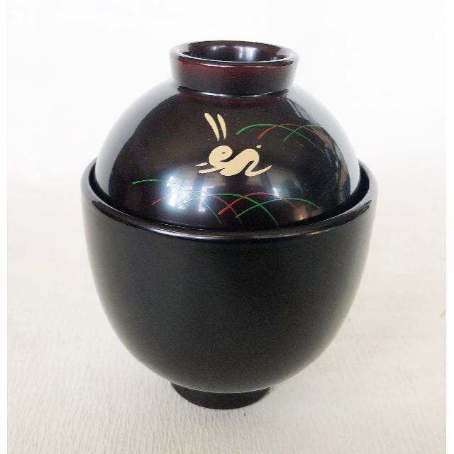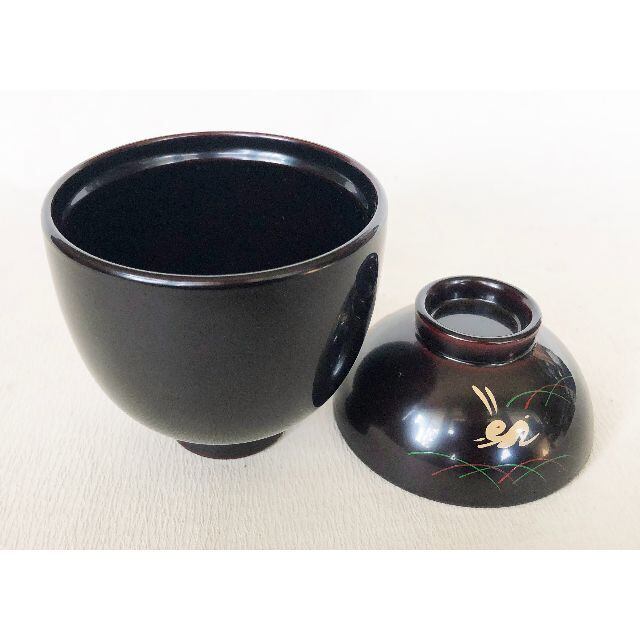 小吸物椀 漆器 うさぎの絵蒔絵 溜塗り 5客 汁椀 ぜんざい
