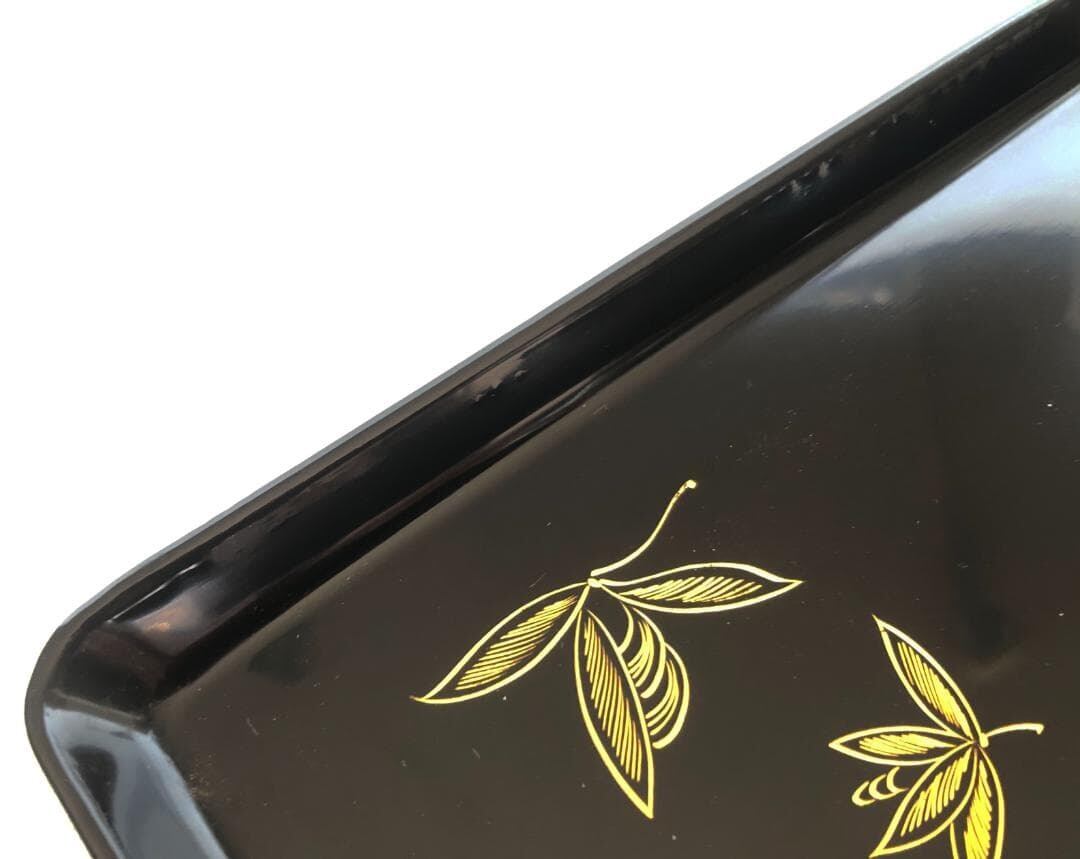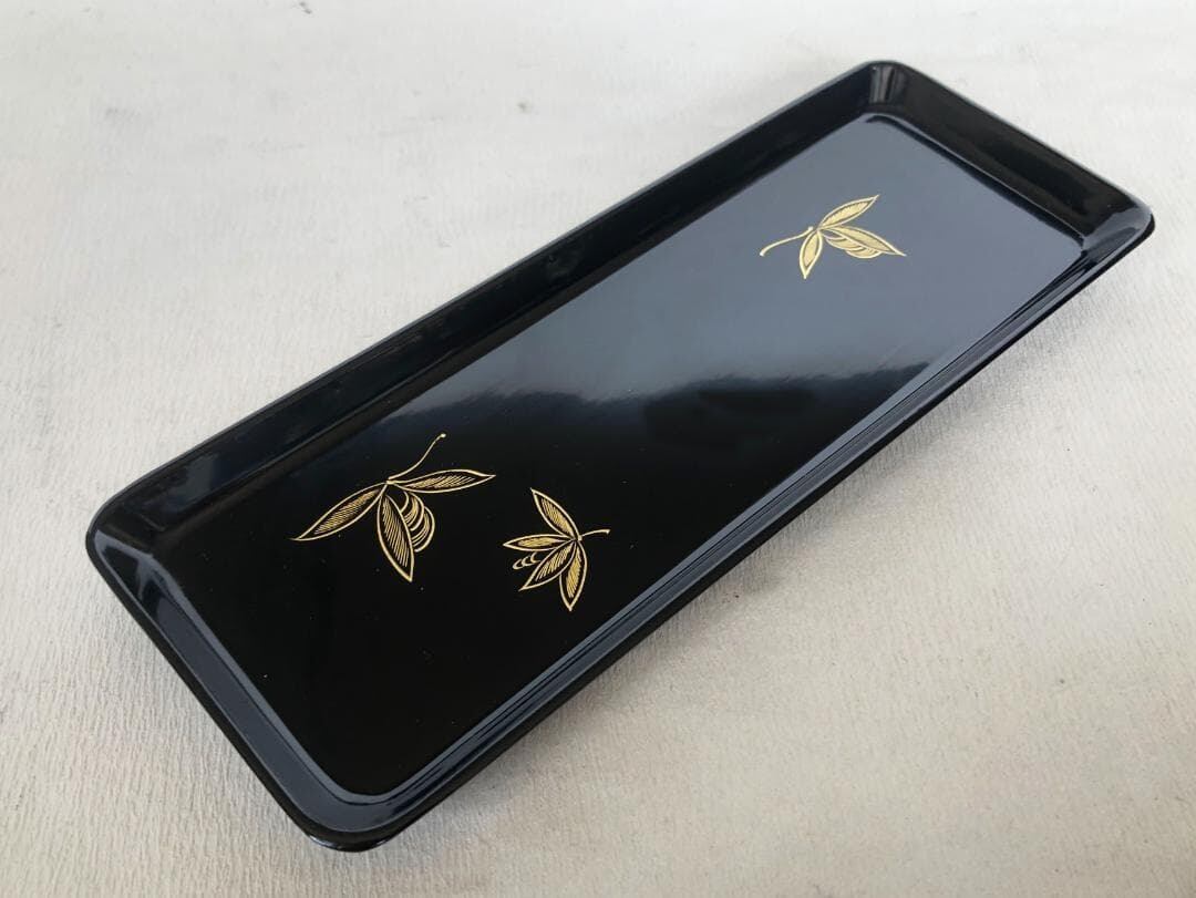 黒塗り 小花沈金ペントレー 漆器 漆塗り 木製 8寸 24cm ★アウトレット★切手盆 名刺盆 筆置